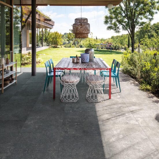 より都会的で直線的な美しさを好む方には、コンクリート調が、シンプルで現代的な表面を提供し、モダンな屋外床に最適です。軽やかなテクスチャとニュートラルな色味が、エレガントでミニマルな空間を生み出し、デザインテラスや屋外リビングスペースにぴったりです。各エフェクトは、さまざまなスタイルのニーズに応えるよう設計されており、磁器タイルだけが実現できる技術的な信頼性を備えています。