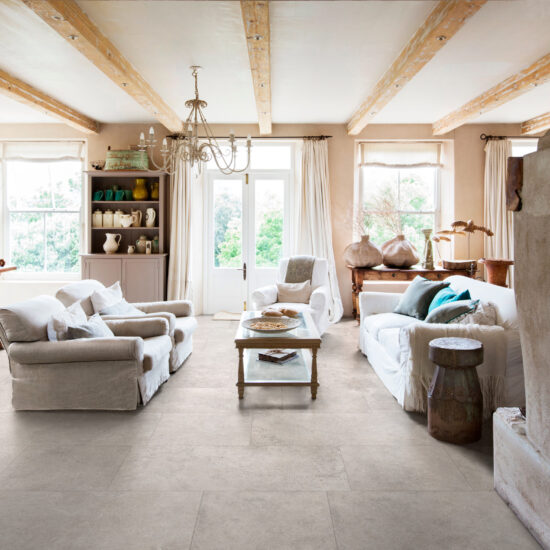 例えば、ストーン調の表面は、リアルでナチュラルな質感をもたらし、落ち着きがあり明るくマテリアル感のある空間に最適です。ウッド調タイル